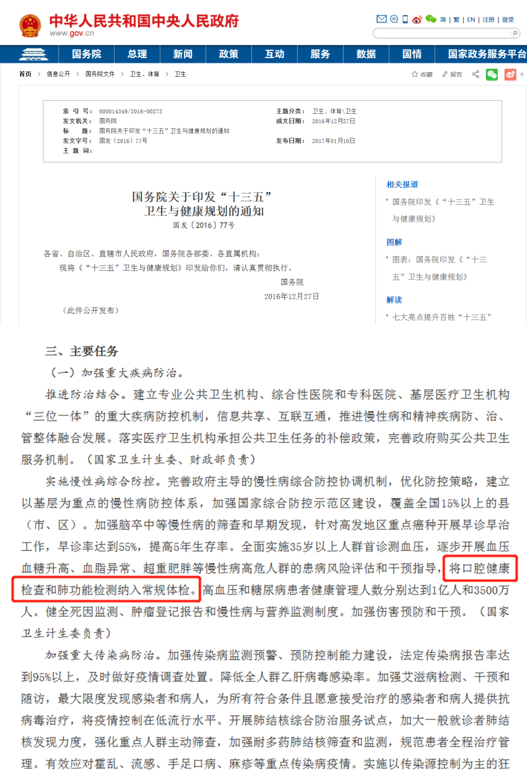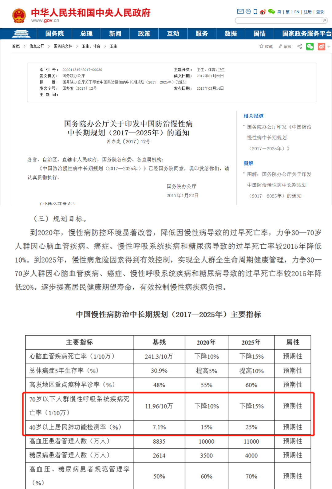 钟南山院士、王辰院士等呼吸领域的专家学者一直在呼吁“像量血压一样检查肺功能”;同时国家也出台一系列政策支持鼓励开展肺功能检查。
