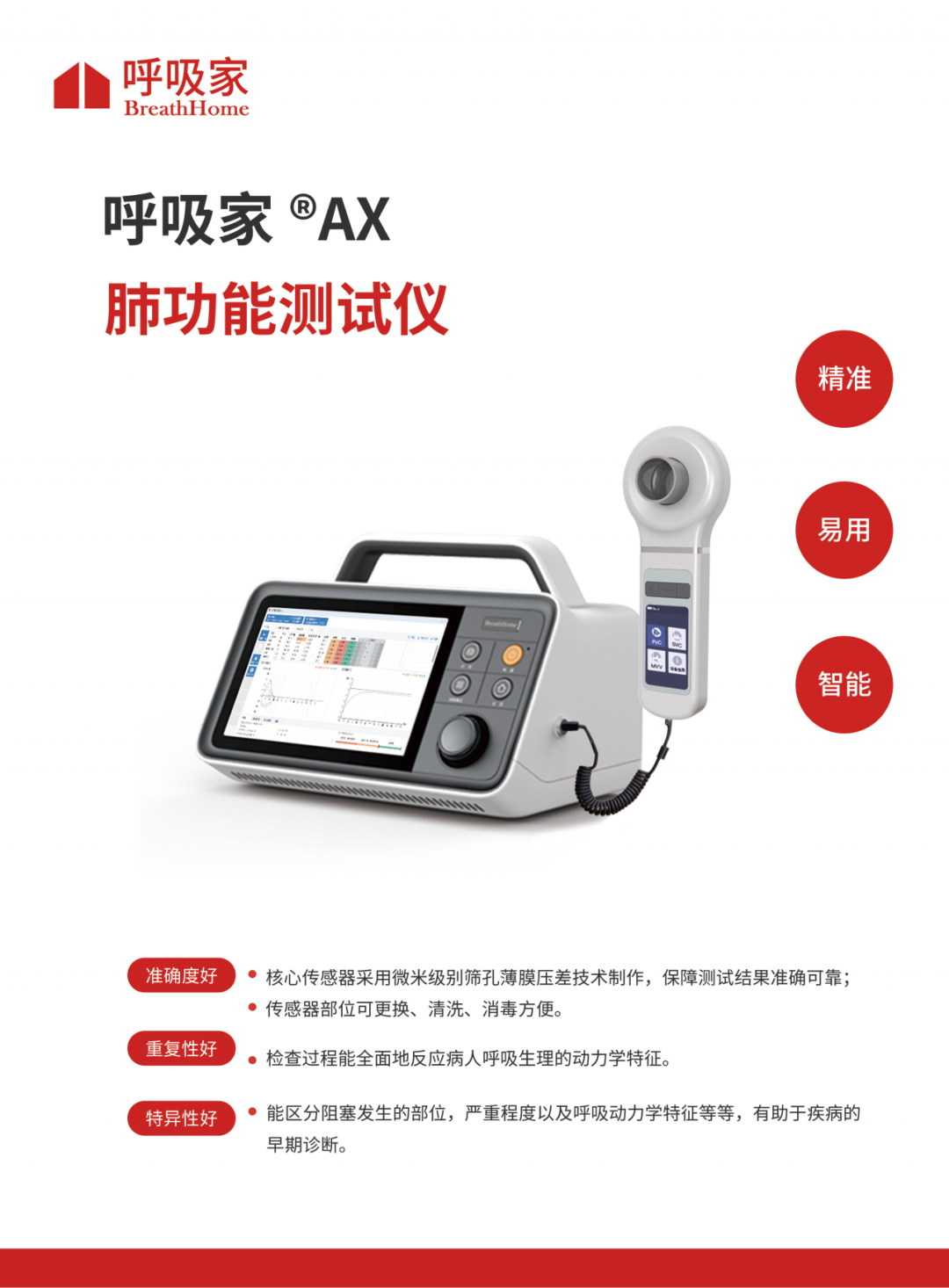 呼吸家携手伟亚安重磅推出AX型肺功能测试仪,该产品为科技部国家重点研发专项计划成果产品。